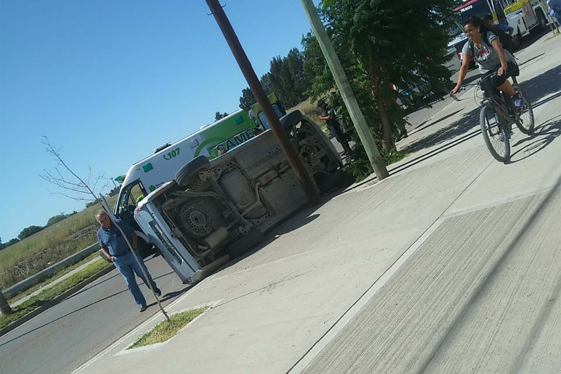 Producto del desmayo de segundos que vivió, perdió el control de su camioneta y terminó tumbándola sobre la vereda, pasando el cruce con Rigamonti.