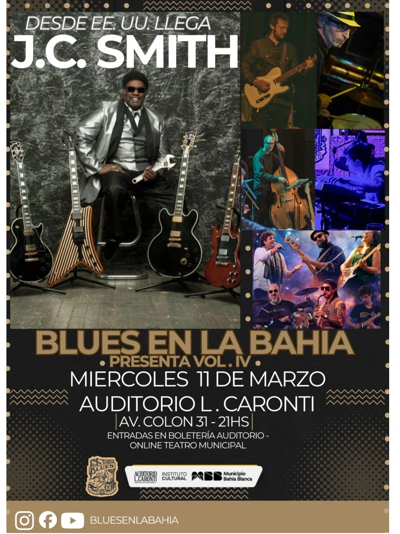 El ciclo Blues en la Bahía va a realizar una nueva edición el miércoles 11 de marzo, desde las 21 horas, en el Auditorio Luis C. Caronti. El evento contará con la presentación del bluesman estadounidense J.C. Smith, quien llegará a la ciudad como figura central de la noche.