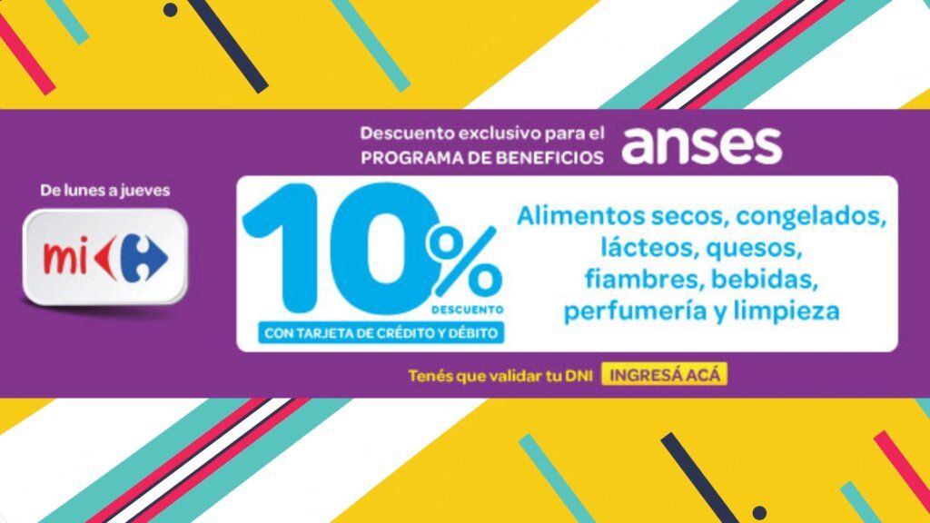Para acceder al descuento, los grupos mencionados deben ser parte del programa Mi Carrefour. Para ello deben ingresar en la web www.micarrefour.com.ar y tildar la opción ANSES.