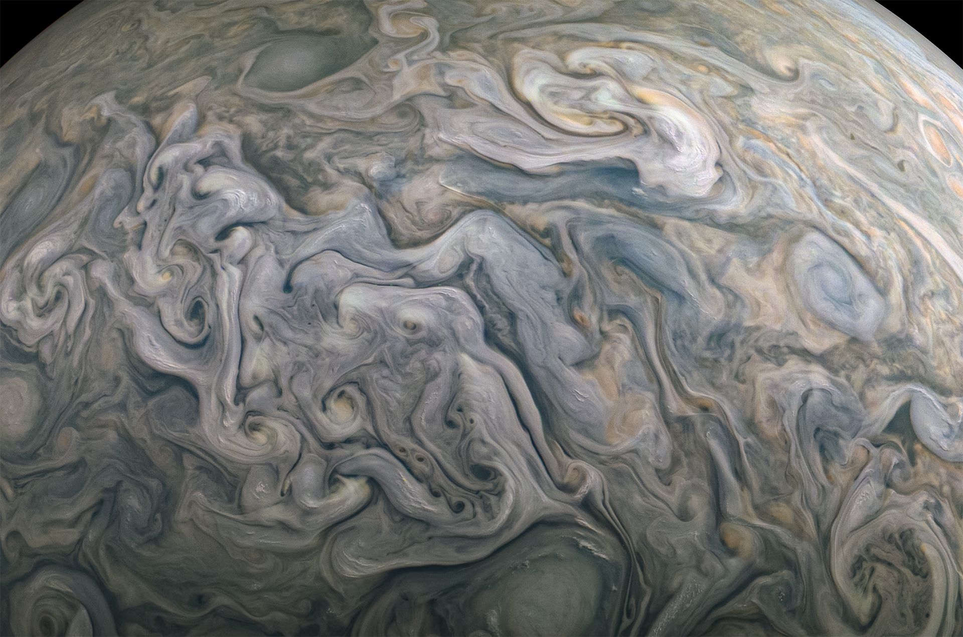 La cámara de luz visible de la sonda espacial Juno logró captar con detalle esta imagen.