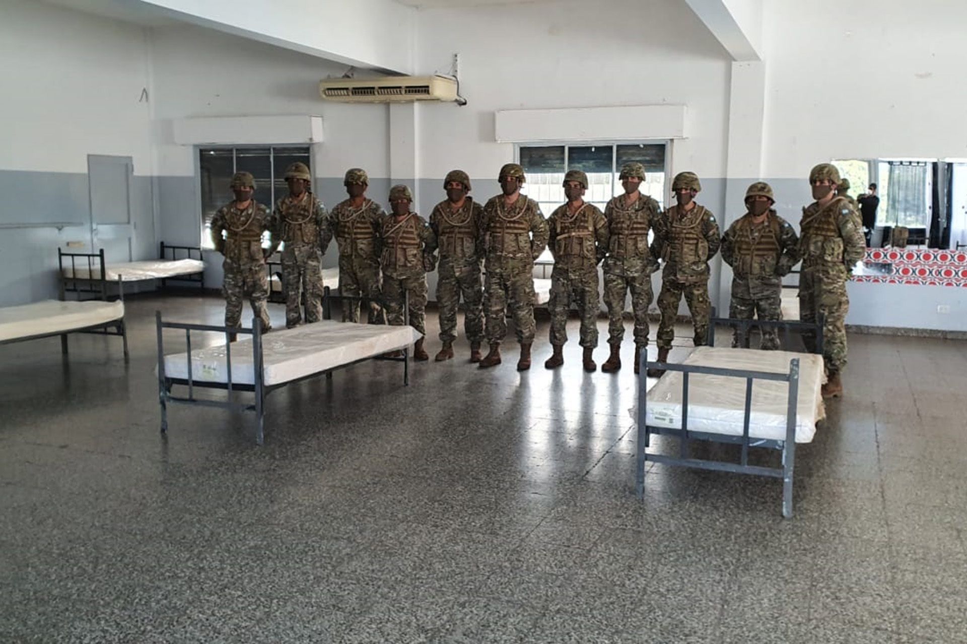 Uno de los establecimientos que está viviendo esta modificación es el Club Liniers. La entidad deportiva de calle Alem ya tiene más de 30 camas, que fuerzas militares se encargaron de acomodar en la mañana de hoy.
