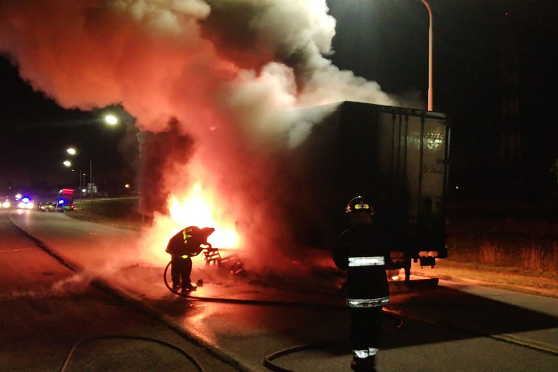 Al llegar los servicios de emergencia se encontraron con un semi remolque envuelto en llamas, por lo que rápidamente ambos equipos se pusieron a trabajar buscando minimizar los daños de la unidad.