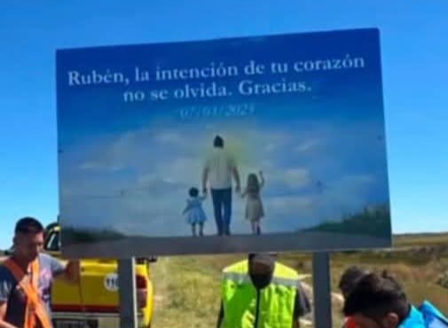 El cartel homenajea al trabajador que intentó rescatar a las nenas, que iban en auto con su familia cuando el agua empezó a subir y al ser imposible continuar, sus padres hicieron el traspaso de vehículo.