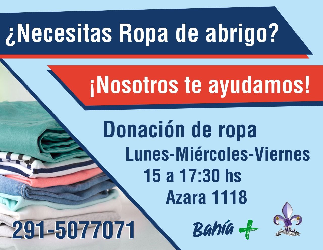 Miembros de la Asociación de Scout Cristiana se acoplaron a Bahía Suma y se encuentran recolectando y distribuyendo ropa de abrigo.