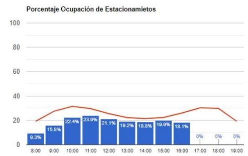 En este mes los 30 inspectores del cuerpo municipal lograron fiscalizar las 353 cuadras y según los datos del sistema la ocupación principal (alrededor de 38%) se da entre las 11 y 12 del mediodía.