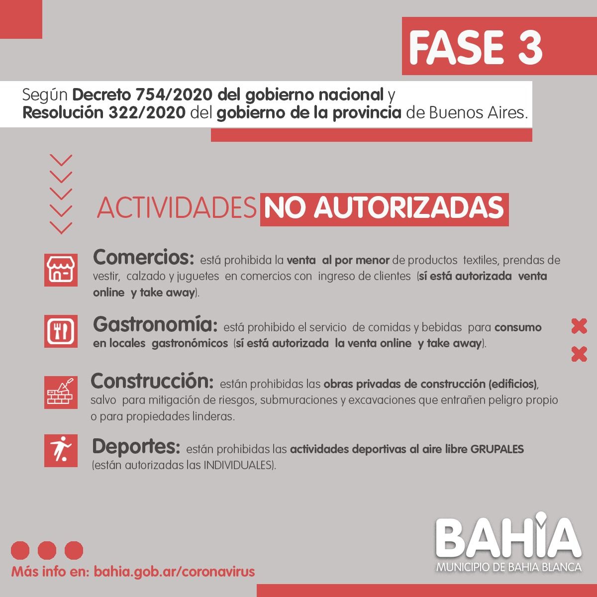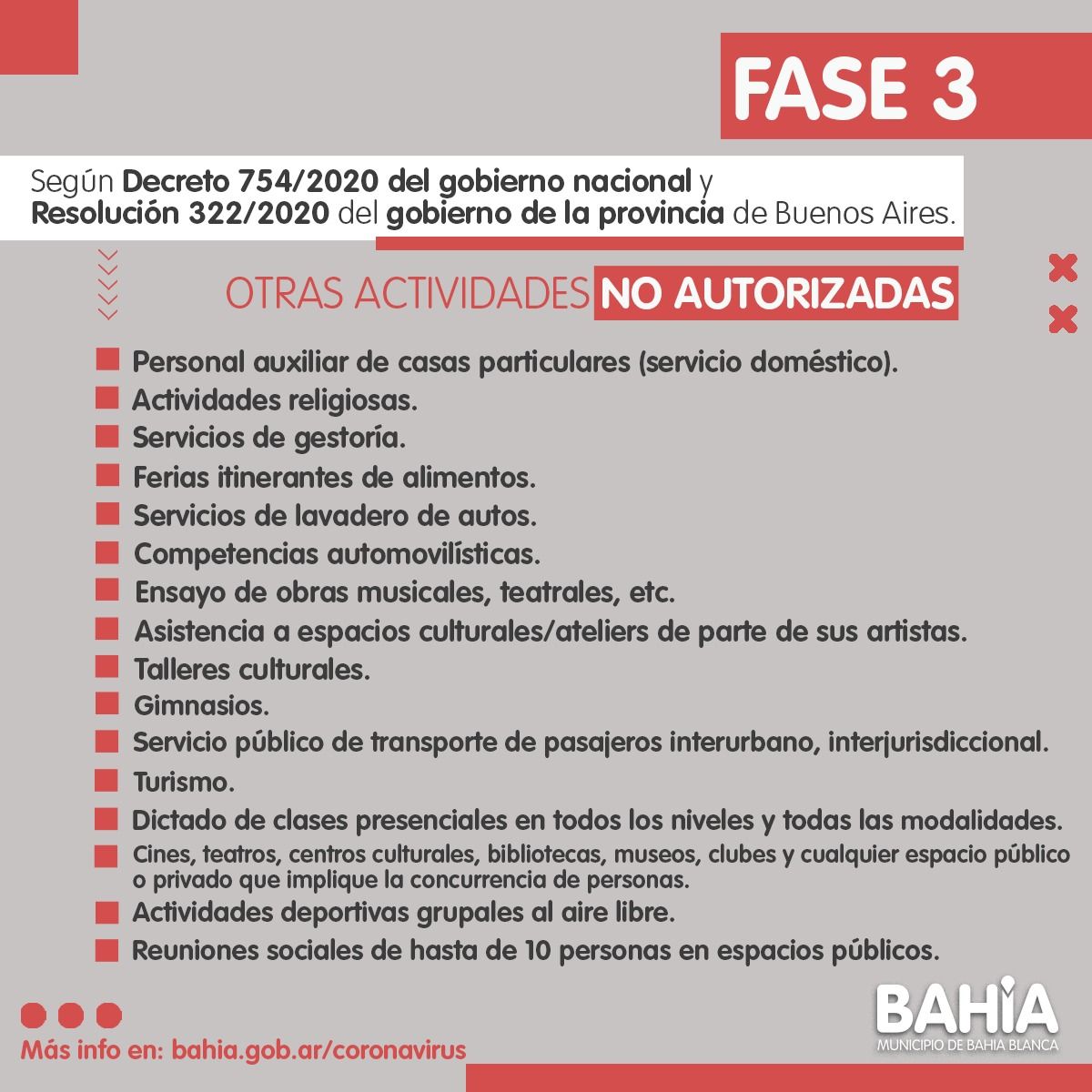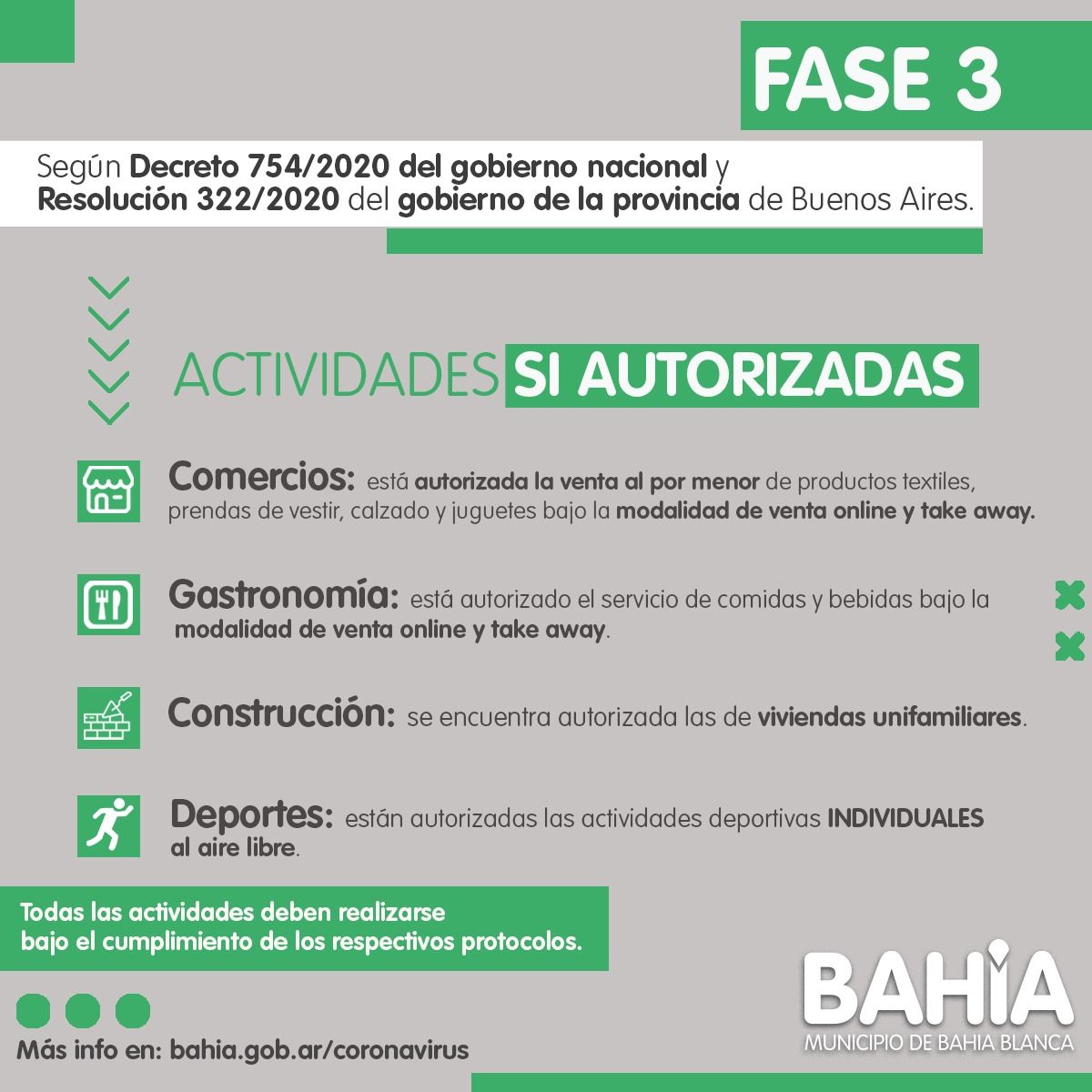 👉🏻 El Gobierno Nacional dispuso que Bahía Blanca vuelve a la Fase 3 del Aislamiento Social, Preventivo y Obligatorio.