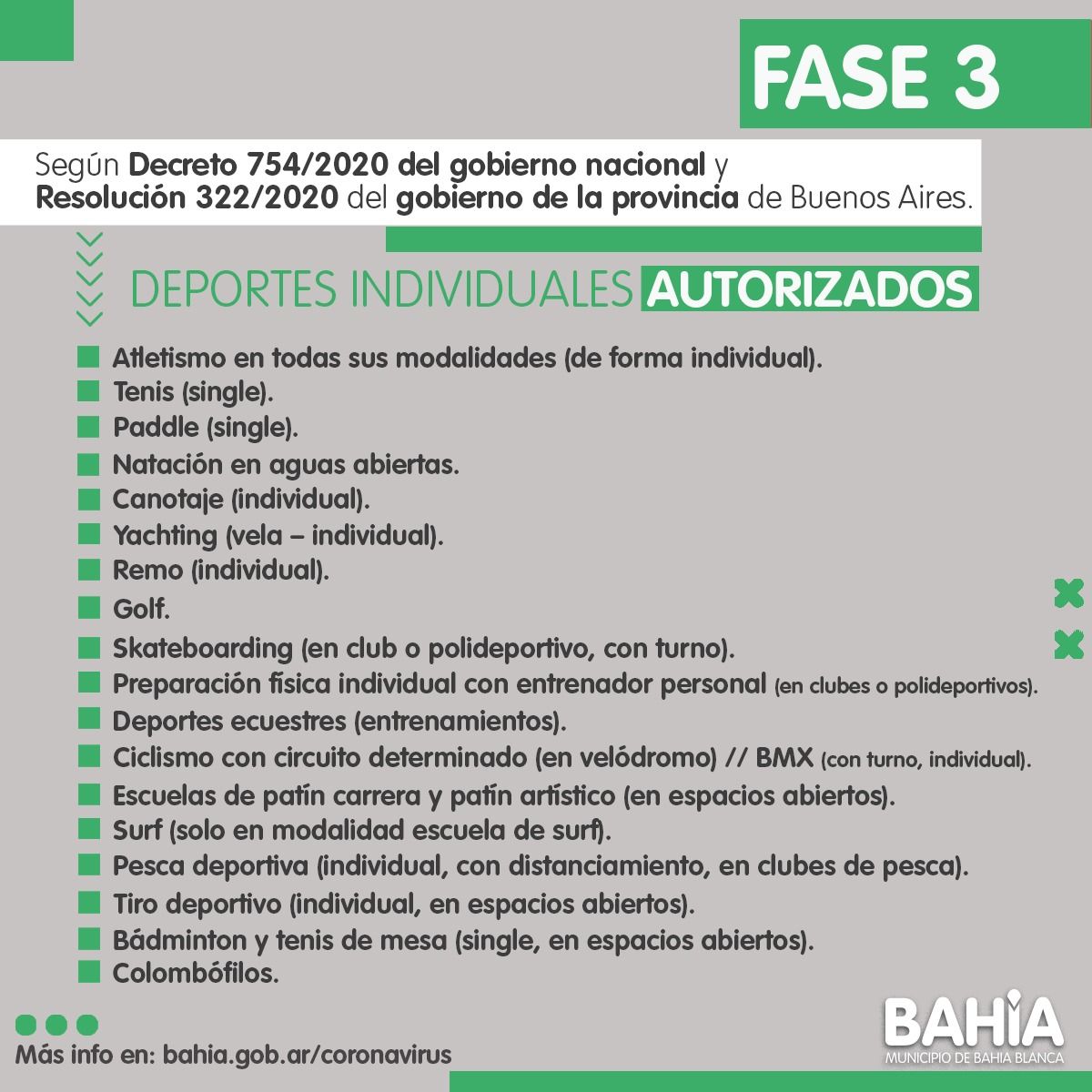 ✅ Deportes: están autorizadas las actividades deportivas INDIVIDUALES al aire libre: