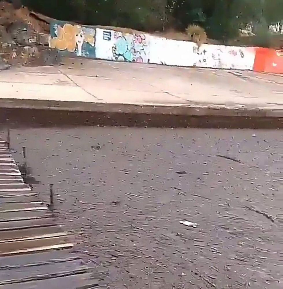 El cauce del agua fue alcanzado por las cenizas, que favorecidas por un pequeño dique, generó un llamativo manto.