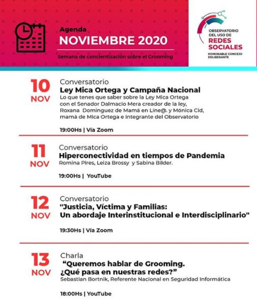 El Observatorio del uso de redes sociales del Concejo Deliberante realiza varias actividades virtuales en la semana de la concientización sobre el grooming.
