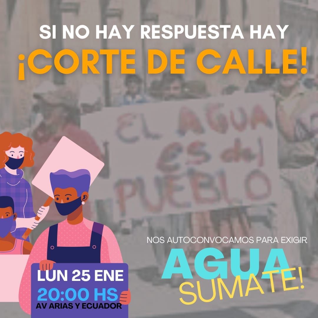 En la esquina de Avenida Arias y Ecuador, convocan para las 20 a un corte de calle a los perjudicados de los barrios Rucci, Héroes de Malvinas, Villa Rosas, Villa Parodi, Villa Delfina y alrededores.