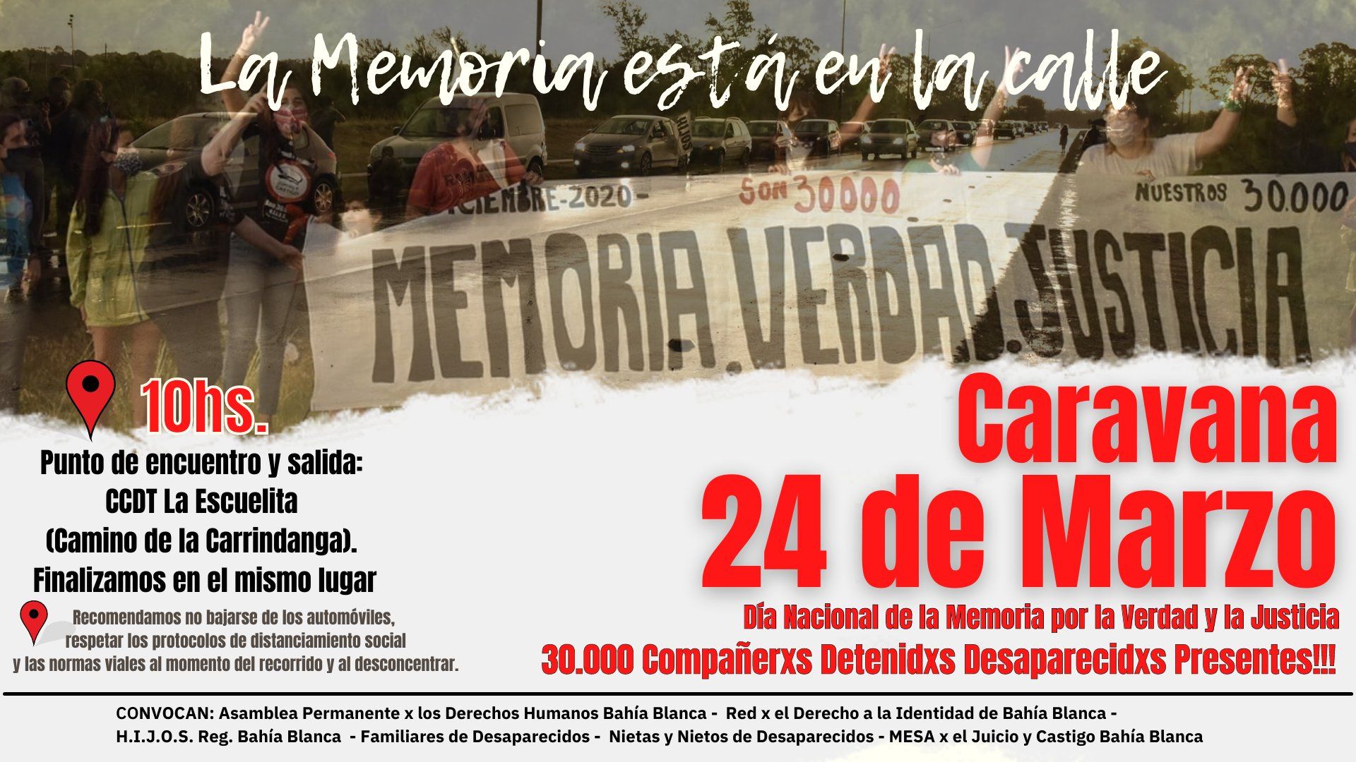 Organismos de DDHH de Bahía convocan a una caravana para el 24 de marzo