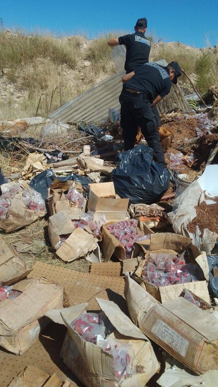 En el descampado y basural ubicado en El Boyero, Fournier y Jorge Newbery se encontraron una gran cantidad de señales detonadoras del ferrocarril que explotaron a partir de un incendio.
