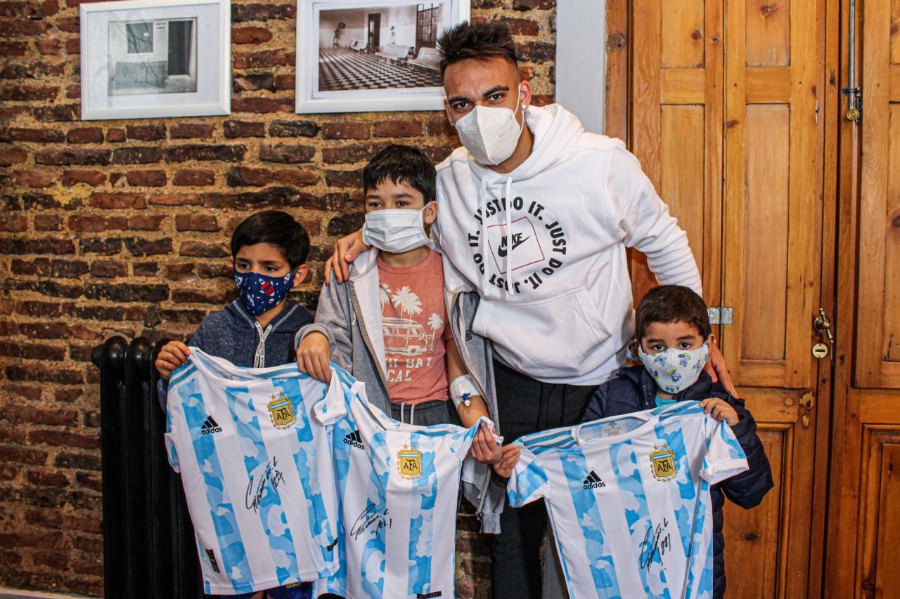 Lautaro pasó por el Municipal y firmó camisetas a los chicos que están internados