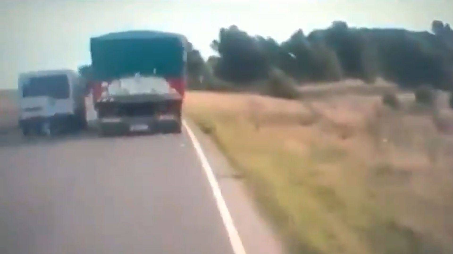 En las imágenes se veía a una camioneta superando a otro vehículo para adelantarse y casi impacta con otro que venía de frente.