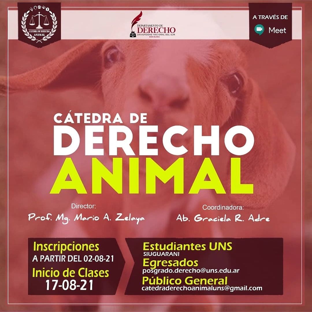 Se encuentra abierta la inscripción a la Cátedra de Derecho Animal en el ámbito de la Universidad Nacional del Sur.