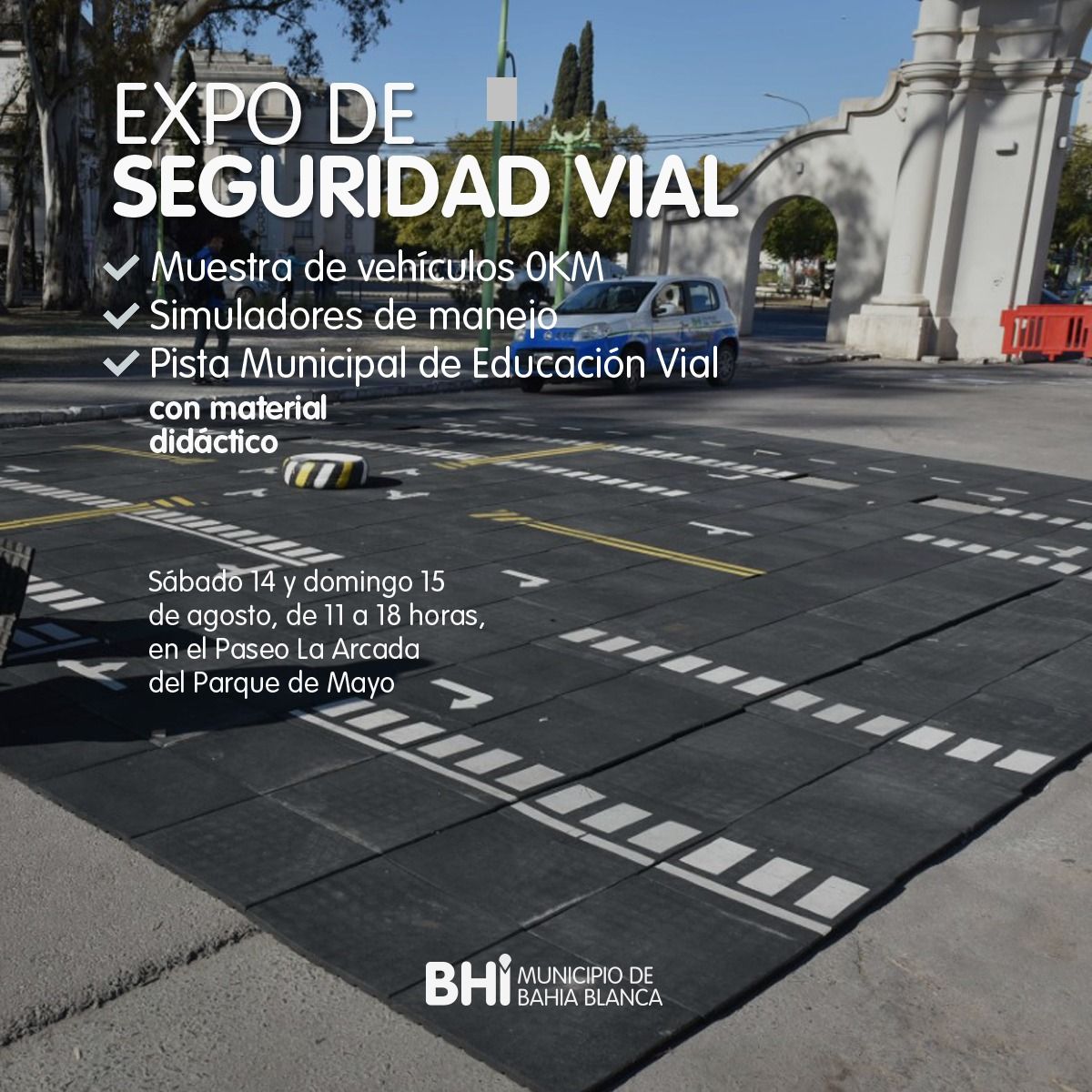 En el Paseo la Arcada del Parque de Mayo, de 11 a 18 hs, se realizarán diversas actividades y se brindará información sobre Seguridad Vial, recomendaciones, medidas y buenos hábitos.