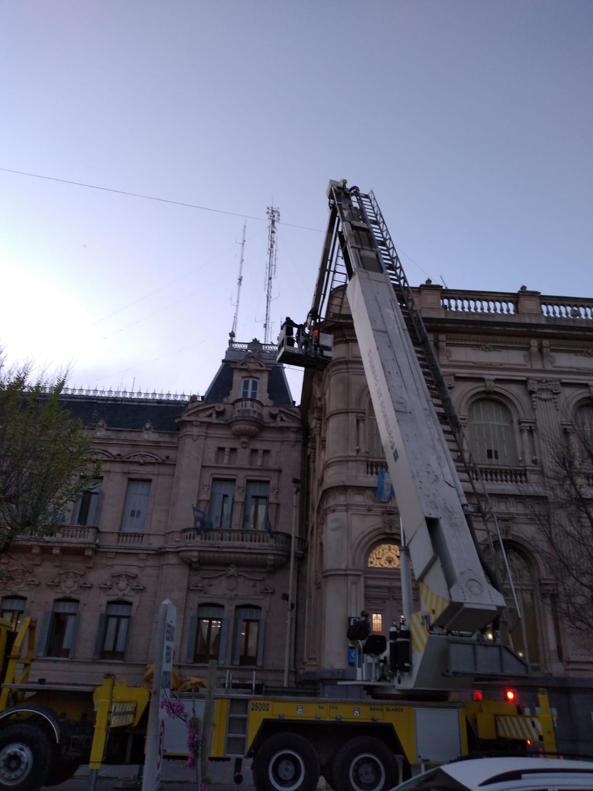 Personal de Defensa Civil y de Bomberos tuvieron que intervenir en los últimos días para quitar mampostería suelta que se desprendió del exterior del Palacio Municipal.