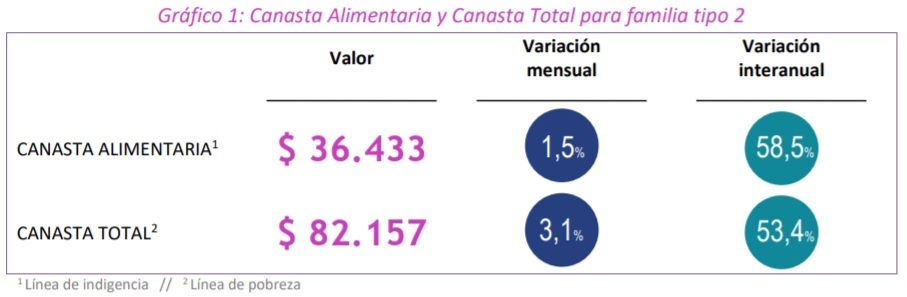Ese monto necesitó recaudar para cubrir sus consumos básicos, tanto alimentarios como no alimentarios.