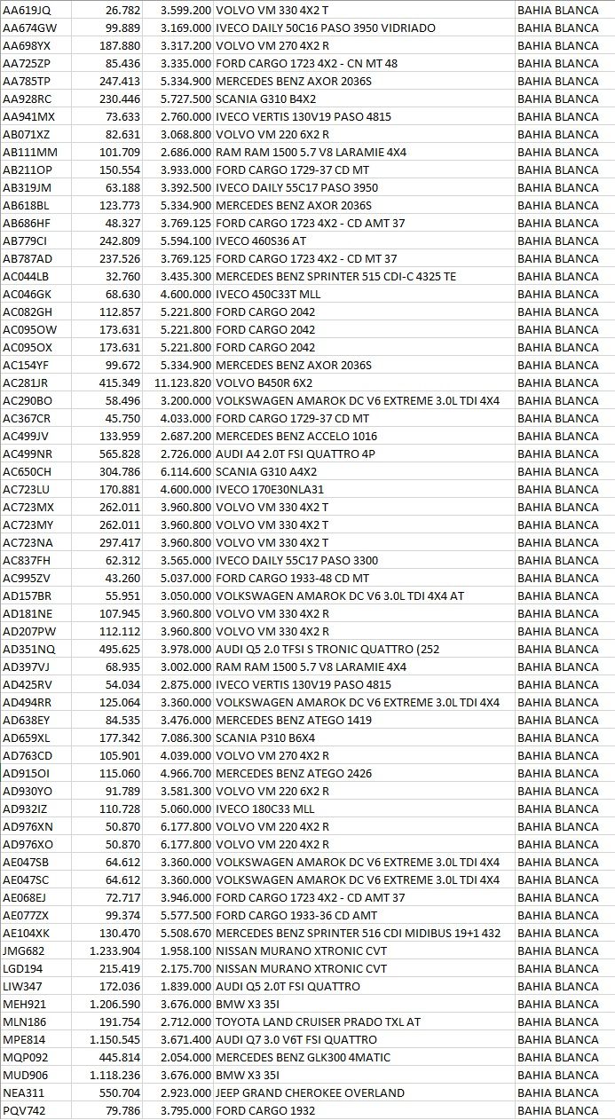 63 bahienses con autos de alta gama y camiones adeudan más de $ 13 millones de patentes