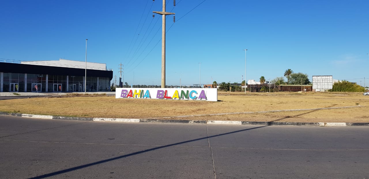 Le pusieron los colores del arcoíris a los carteles de ingreso a Bahía Blanca