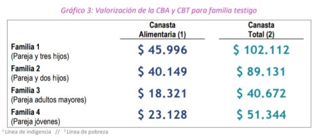La referencia de la Canasta Básica Total tomada por el Creebba aplica para un matrimonio con dos hijos menores.