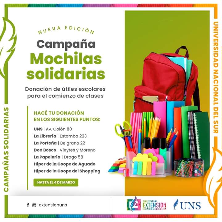 La Universidad Nacional del Sur lanzó la segunda edición de la campaña “Mochilas Solidarias”.