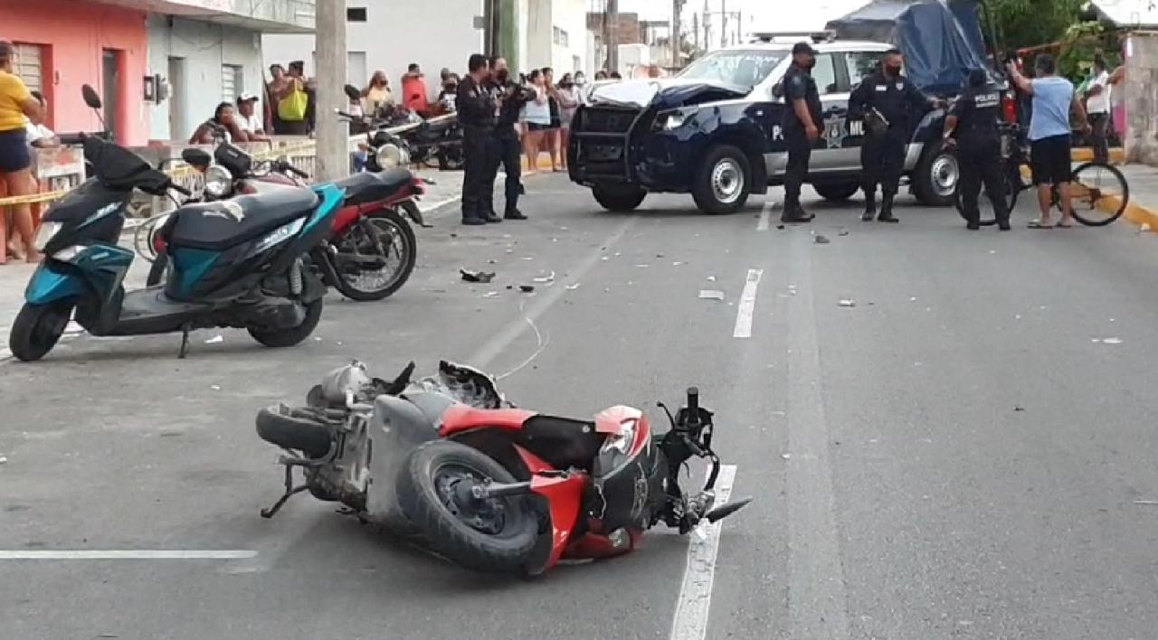 Sucedió en la intersección de la calle 8 con 20 avenida y ambas víctimas fueron derivados en ambulancia a una clínica privada, “con fractura craneoencefálica y en las piernas”, informa Noticaribe.com.mx.