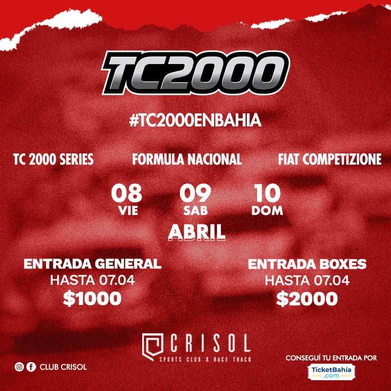 Además, previo a la competencia principal, que visita Bahía después de 15 años, se correrá el TC 2000 Series y la Fórmula Renault Argentina 2.0.