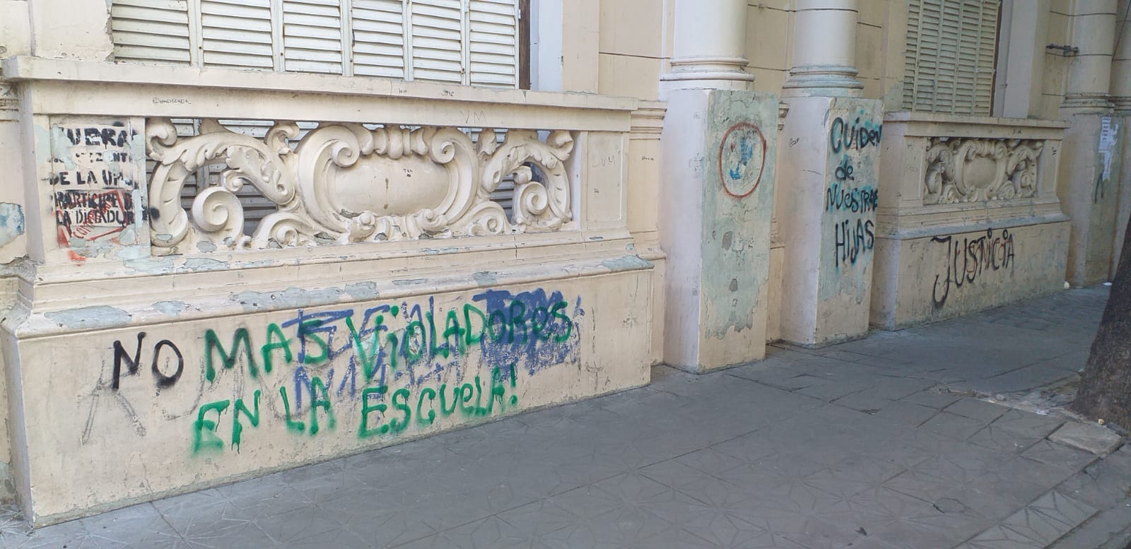 Por ese motivo, estudiantes, allegados y mujeres se manifestaron en la entrada de la escuela, en Sarmiento 168, donde realizaron pintadas y exigieron justicia, mayor seguridad y respuestas a las autoridades. Incluso, solicitaron la renuncia de la directora.