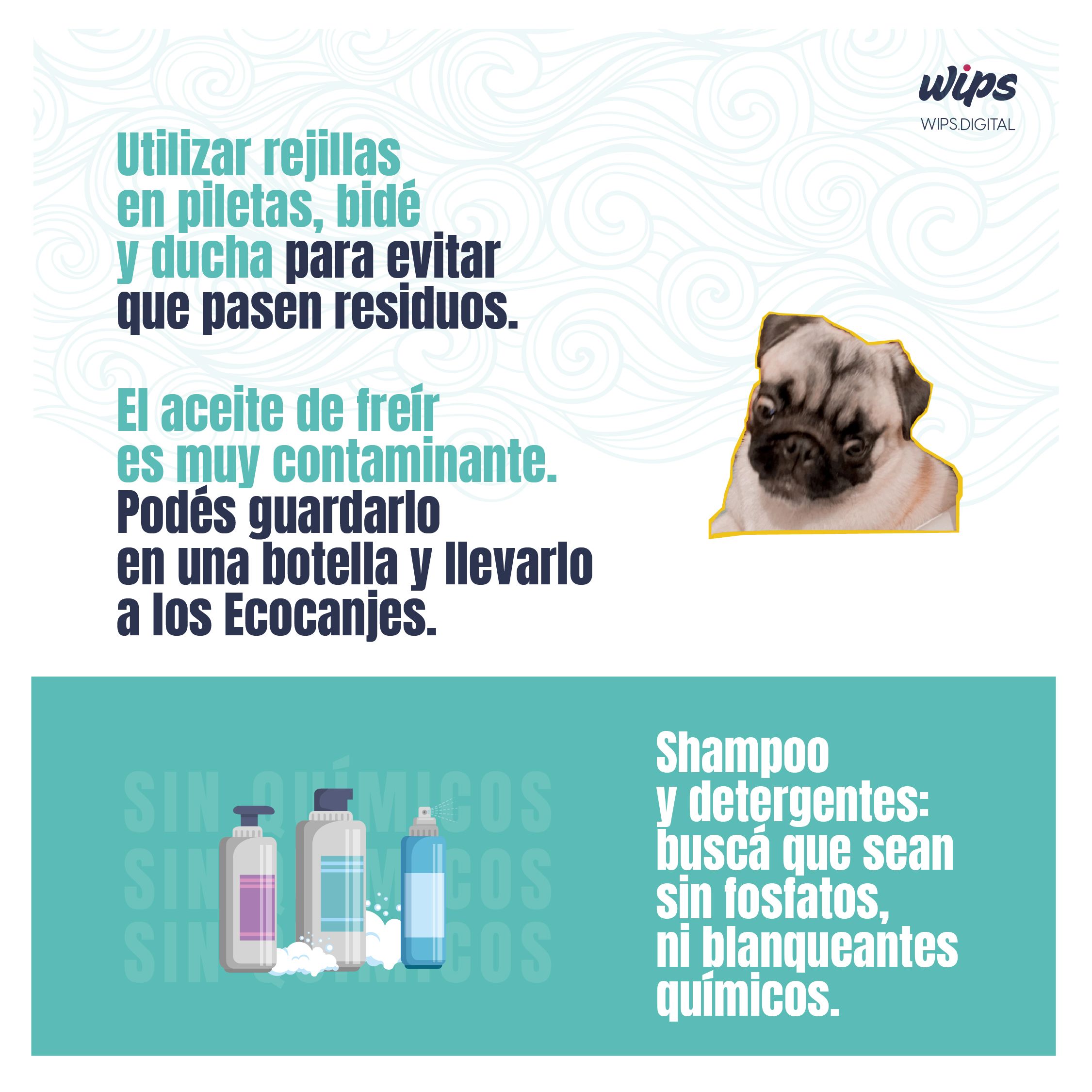 Shampoo y detergentes: buscá que sean sin fosfatos, ni blanqueantes químicos.
