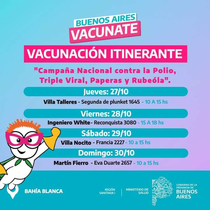 Esta semana hay 43 espacios para inmunizarse en distintos lugares de Bahía.
