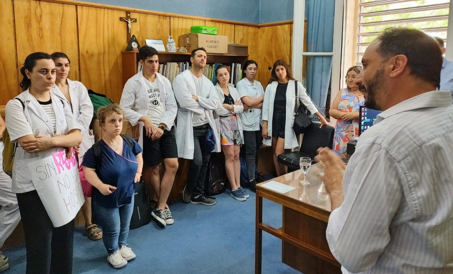 “Nosotros también somos profesionales, y algunos estamos 100 horas semanales dentro del hospital, con sueldos indignos”, dijeron ante la prensa.