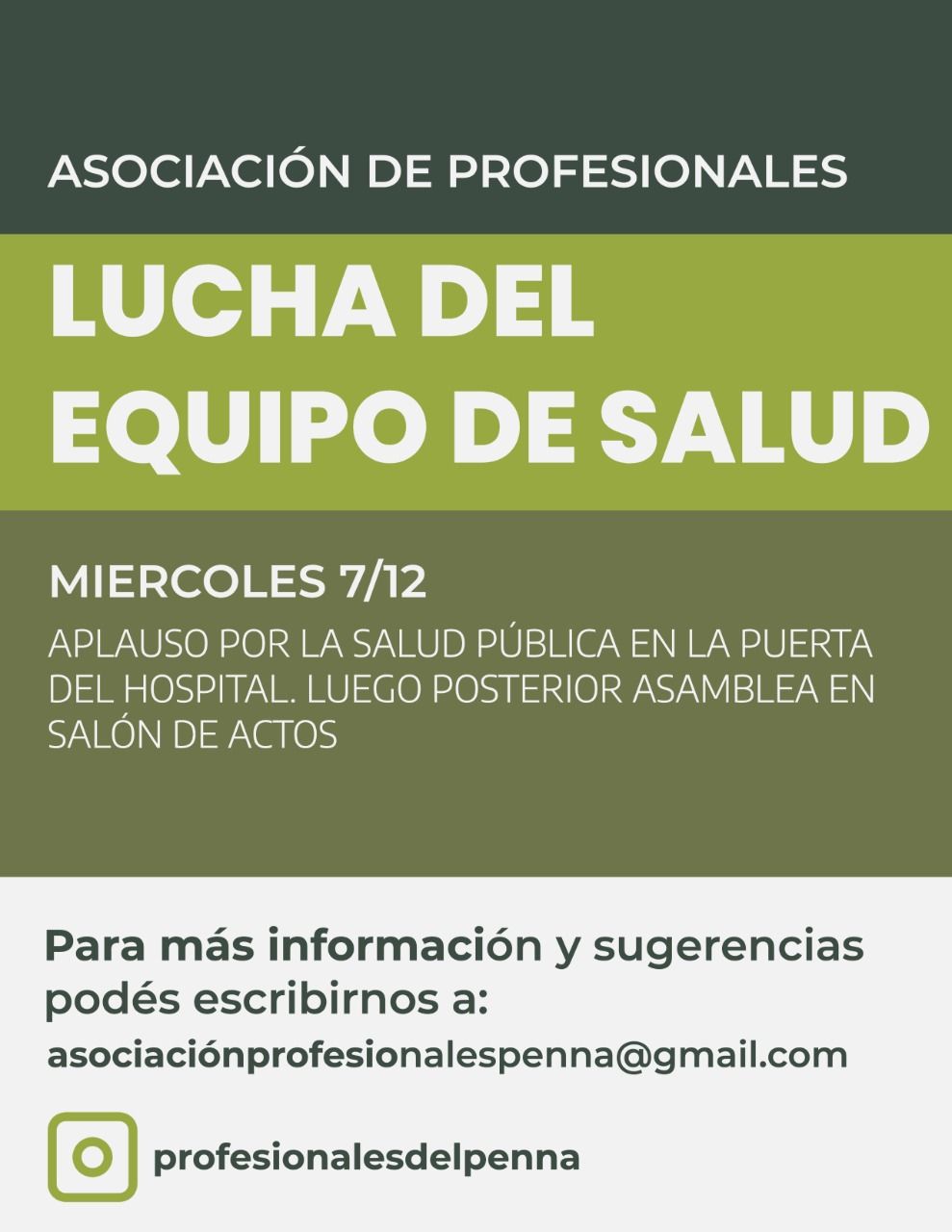Además, por otro lado, los profesionales del Penna realizarán un aplauso por la salud pública frente al ingreso al hospital.