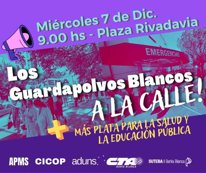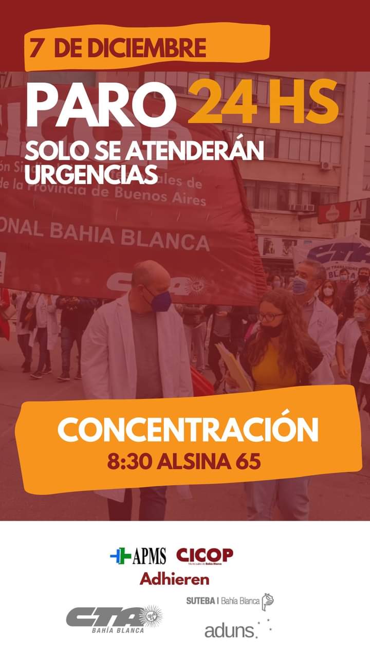 Este miércoles volverá a hacerse en Bahía una jornada de protesta conjunta entre personal de salud y docentes.