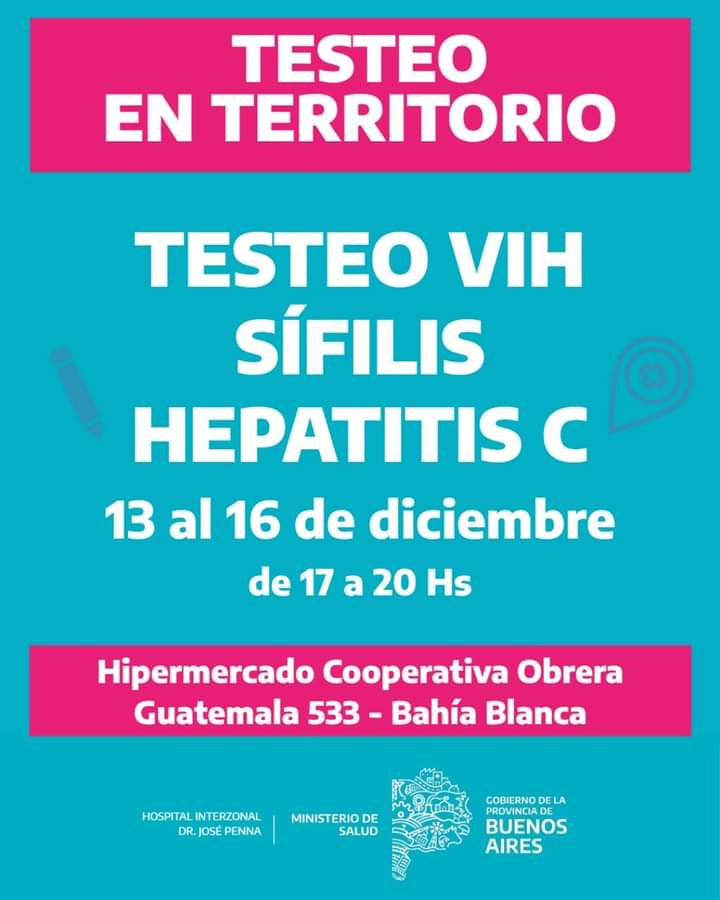 Durante esta semana se están haciendo testeos gratuitos de VIH, Sífilis y Hepatitis C.