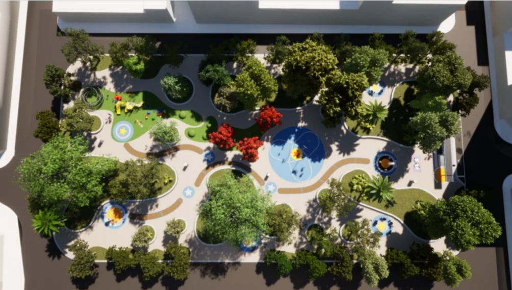 Van a revalorizar la Plaza Pellegrini pero sin la temática básquet
