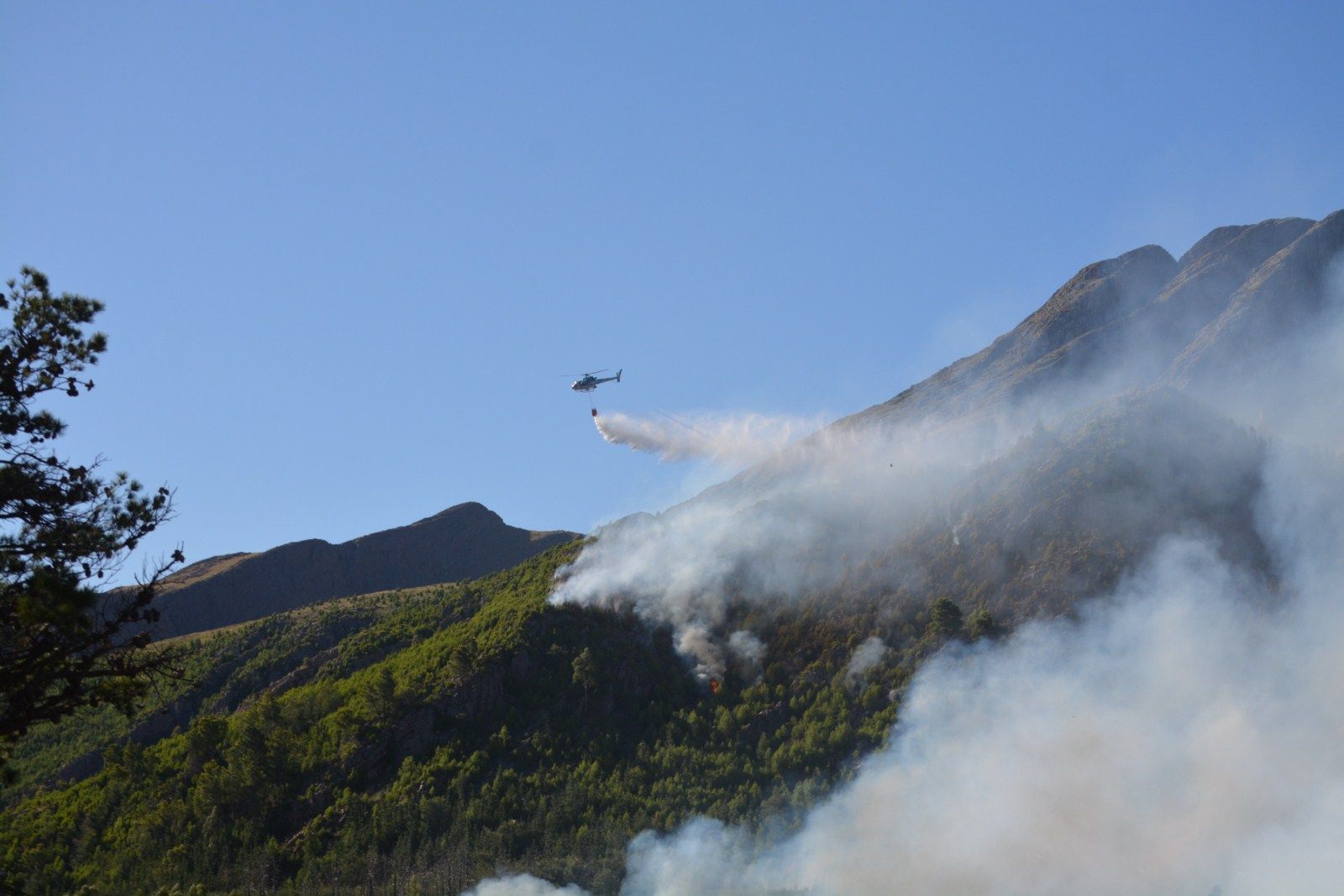 En el lugar trabajan 2 aviones, 4 helicópteros, una veintena de autobombas y otro tanto de vehículos livianos con más de 100 servidores públicos.
