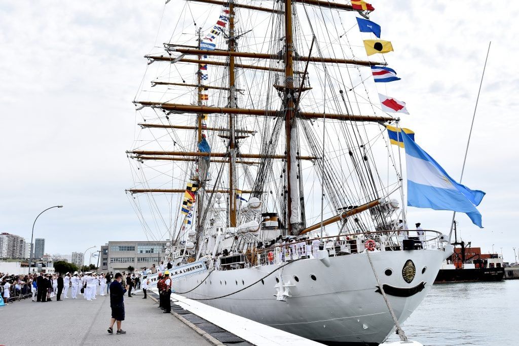 El ARA Libertad en sus velas desplegadas lleva a cada puerto que visita, el mensaje de paz y amistad de una nación libre y soberana.