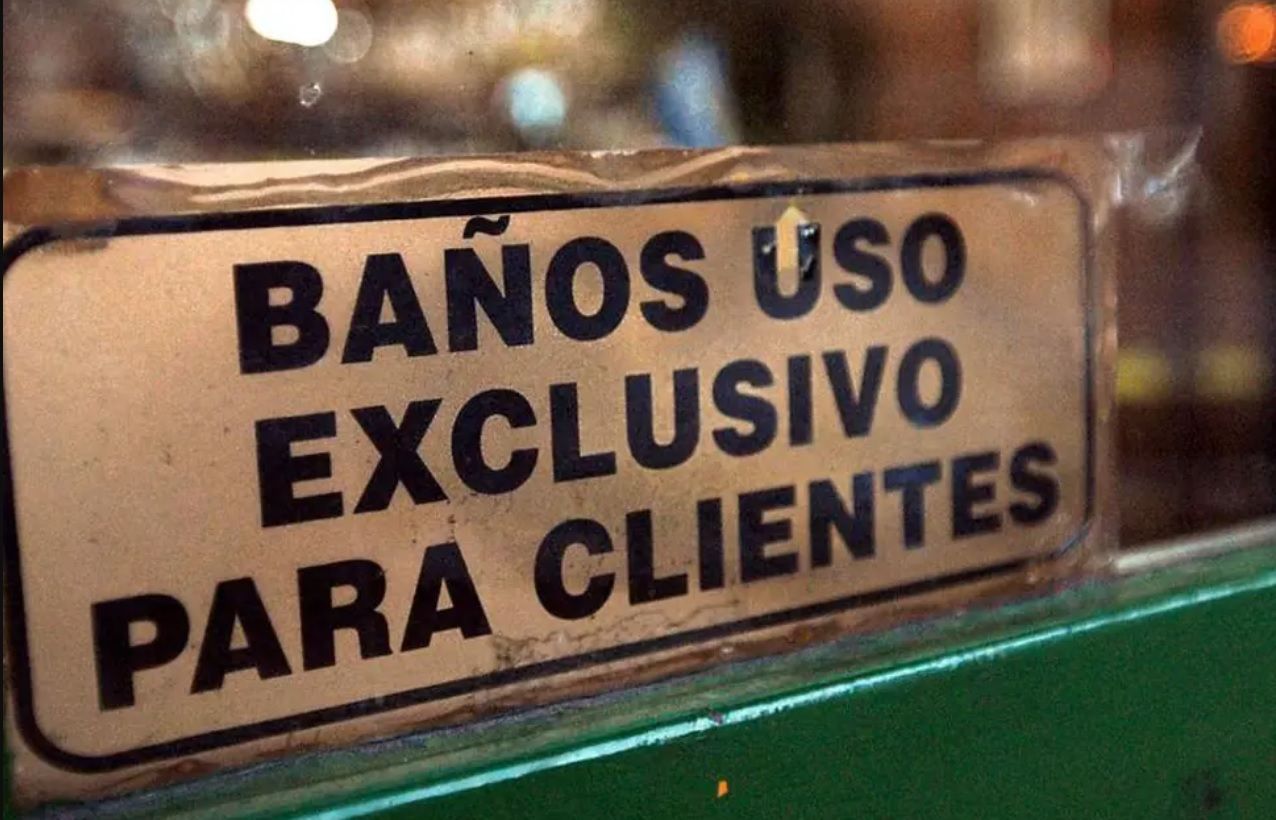 Camino por las cuadras de la peato y leo algunos carteles: Los baños son para uso exclusivo de los clientes. No comprometa al personal. Me consta que, en la Ciudad de Buenos Aires, la ordenanza 46.798/93 determina que bares, restaurantes, estaciones de servicio y otros establecimientos de acceso público deben permitir a cualquier persona el uso de los sanitarios, sin obligación de consumición. En la provincia de Buenos Aires, hasta el día de hoy, si bien parece que hay un proyecto estacionado por ahí, no sucede lo mismo.