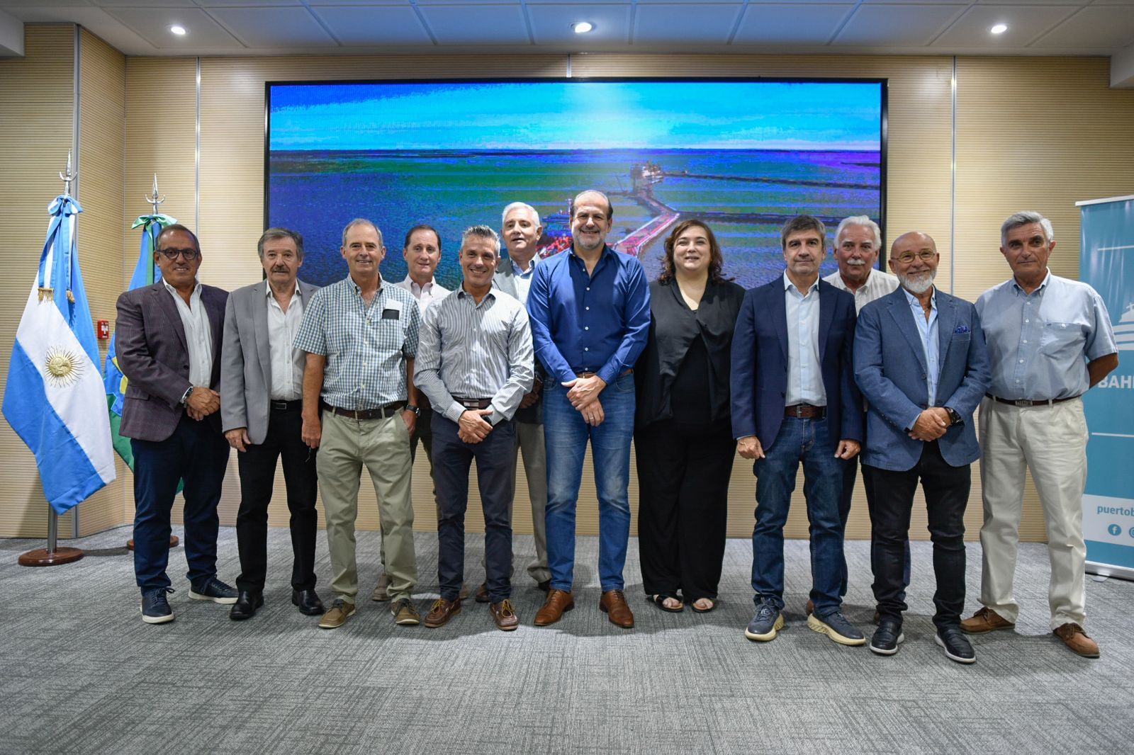 Acompañan Fernando Compagnoni en representación de la municipalidad; Juan Carlos Emilio Fuentes de la Asociación de Ganaderos y Agricultores; Adrián Forte del Centro Marítimo; Horacio Moretti por la Cámara de Permisionarios y Concesionarios; y Gustavo Damiani por la Unión Industrial de Bahía Blanca.