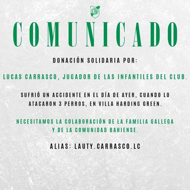 También el club Bella Vista, donde Lucas juega, inició una colecta. El alias es lauty.carrasco.lc.