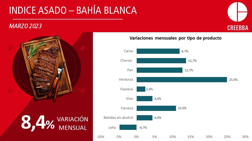 Hacer un asado en Bahía costó en marzo un 8,4 % más que en febrero