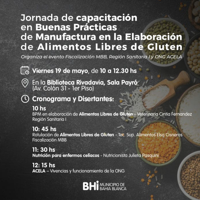 Este viernes, 19 de mayo, se llevará a cabo una jornada sobre buenas prácticas de manufactura en la elaboración de alimentos Libres de Gluten.