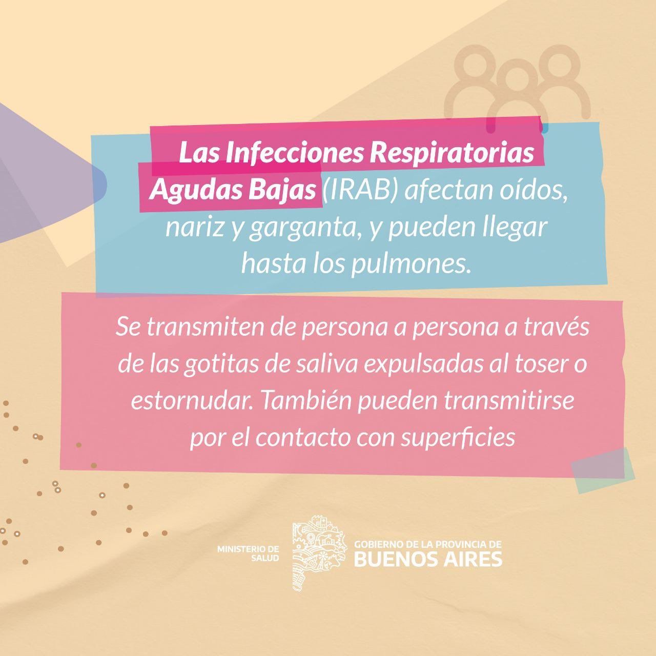 Según se indicó desde la dependencia del Ministerio de Salud bonaerense, las Infecciones Respiratorias Agudas Bajas (IRAB) afectan oídos, nariz y garganta y pueden llegar hasta los pulmones.