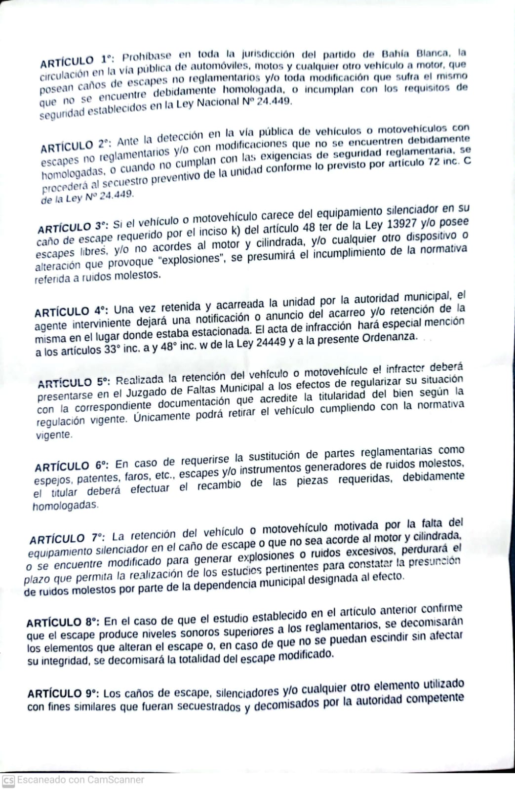 Este miércoles podría aprobarse en el Concejo Deliberante la prohibición de circular en Bahía en vehículos con caños de escape libres o modificados.