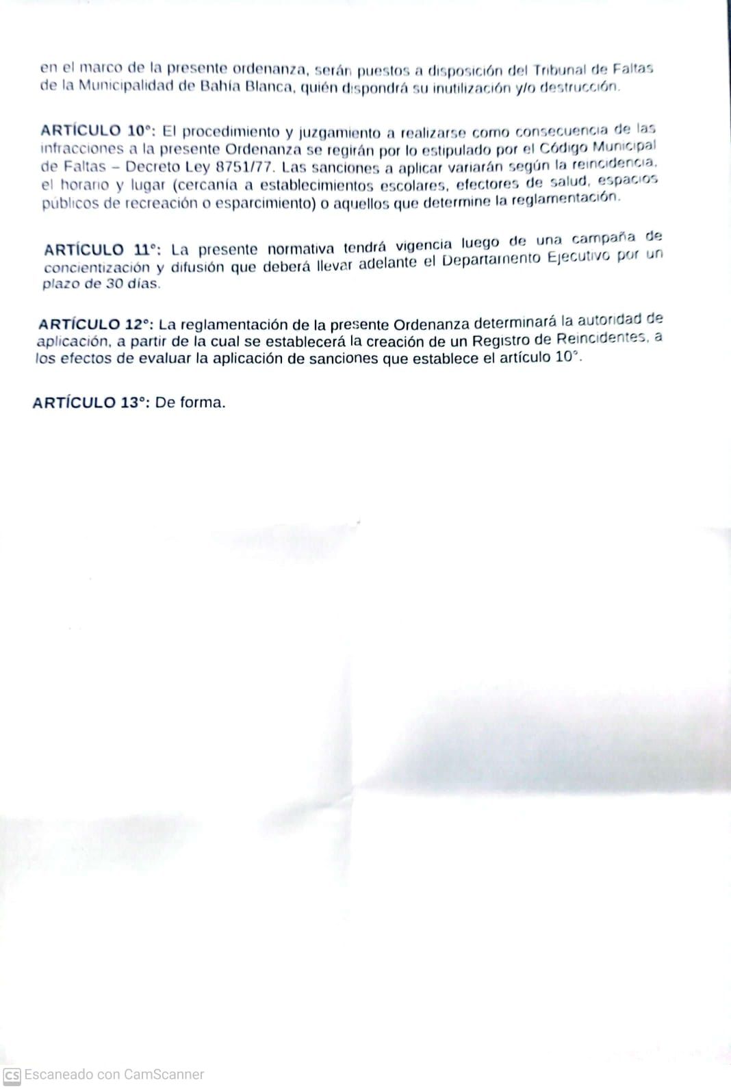 Además, en otro inciso del proyecto se estipula que el municipio podría destruir o inutilizar esos dispositivos, tal como ya sucede en Punta Alta.