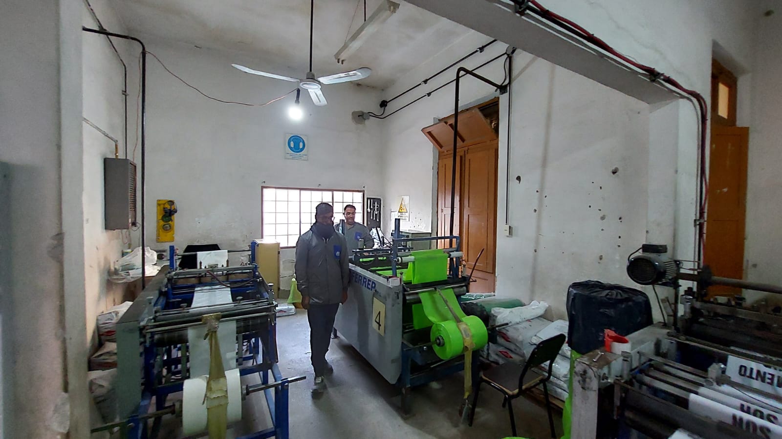 Al comienzo del proceso intervienen dos personas que no son parte del plantel de personas con discapacidad, que elaboran los rollos o las bobinas. Y luego, participan los operarios realizando distintos tipos de productos como bolsas de consorcio y de freezer, entre otras cosas.