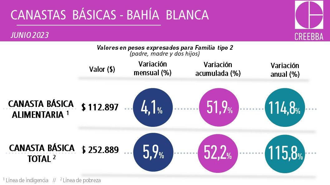 Una familia bahiense compuesta por un matrimonio y dos hijos en edad escolar, necesitó en junio $ 252.889 para no quedar bajo la línea de pobreza.