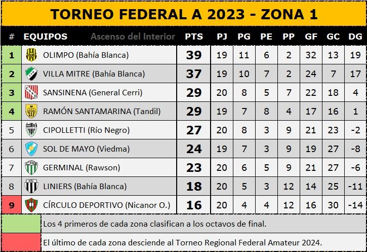 Así quedó la tabla: