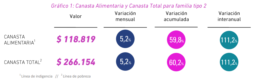 Por otro lado, para alcanzar la Canasta Básica Alimentaria, que mide la indigencia, esa composición debió reunir $ 118.819, un 5,2 % más respecto de junio.